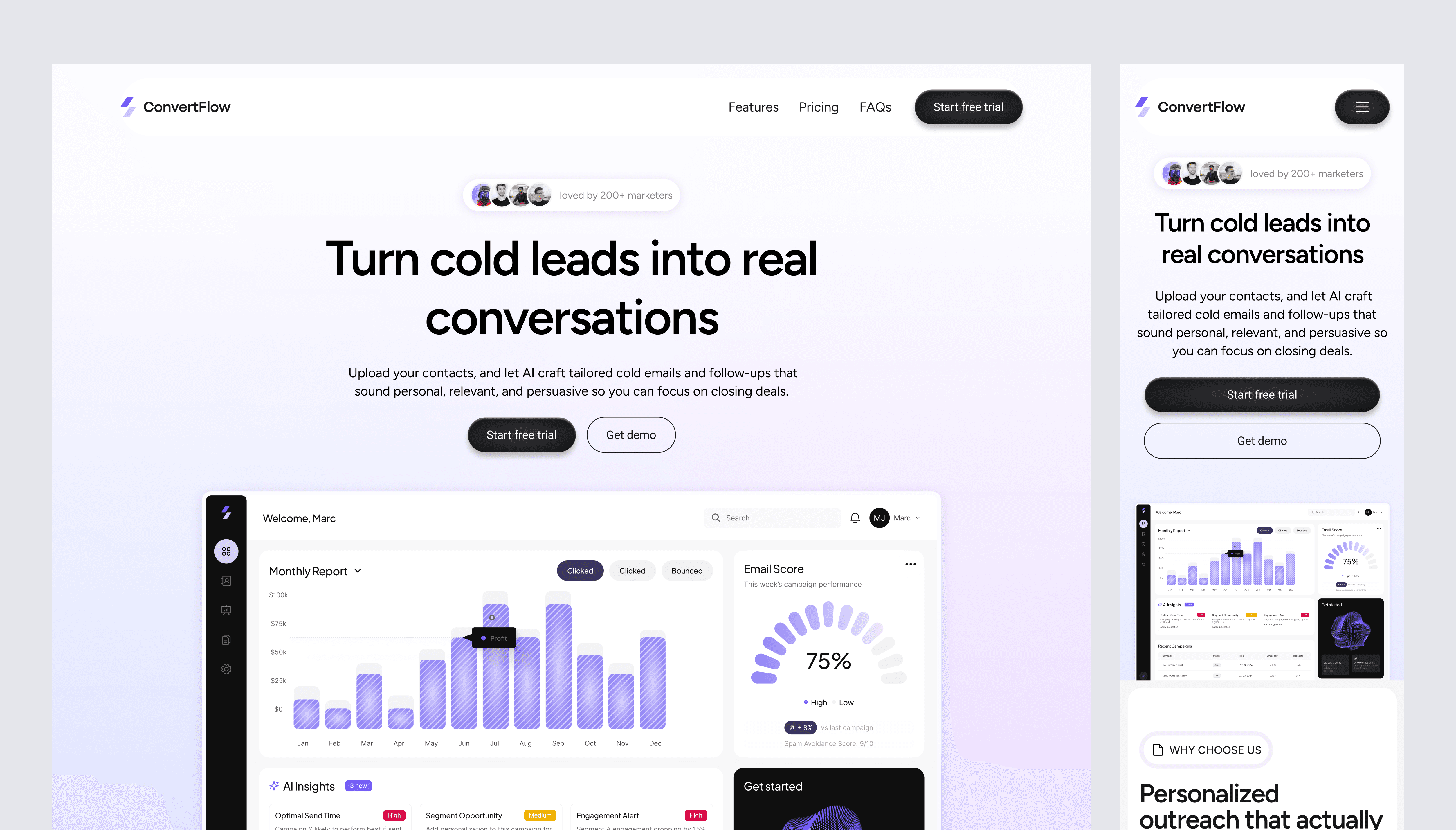 The landing page mirrors the product philosophy: clear, focused, and built around user needs. Every section is designed to communicate value quickly and guide users toward action.