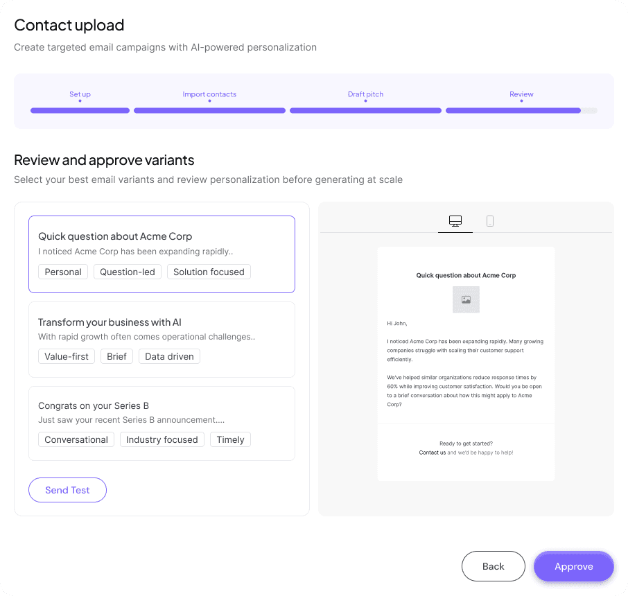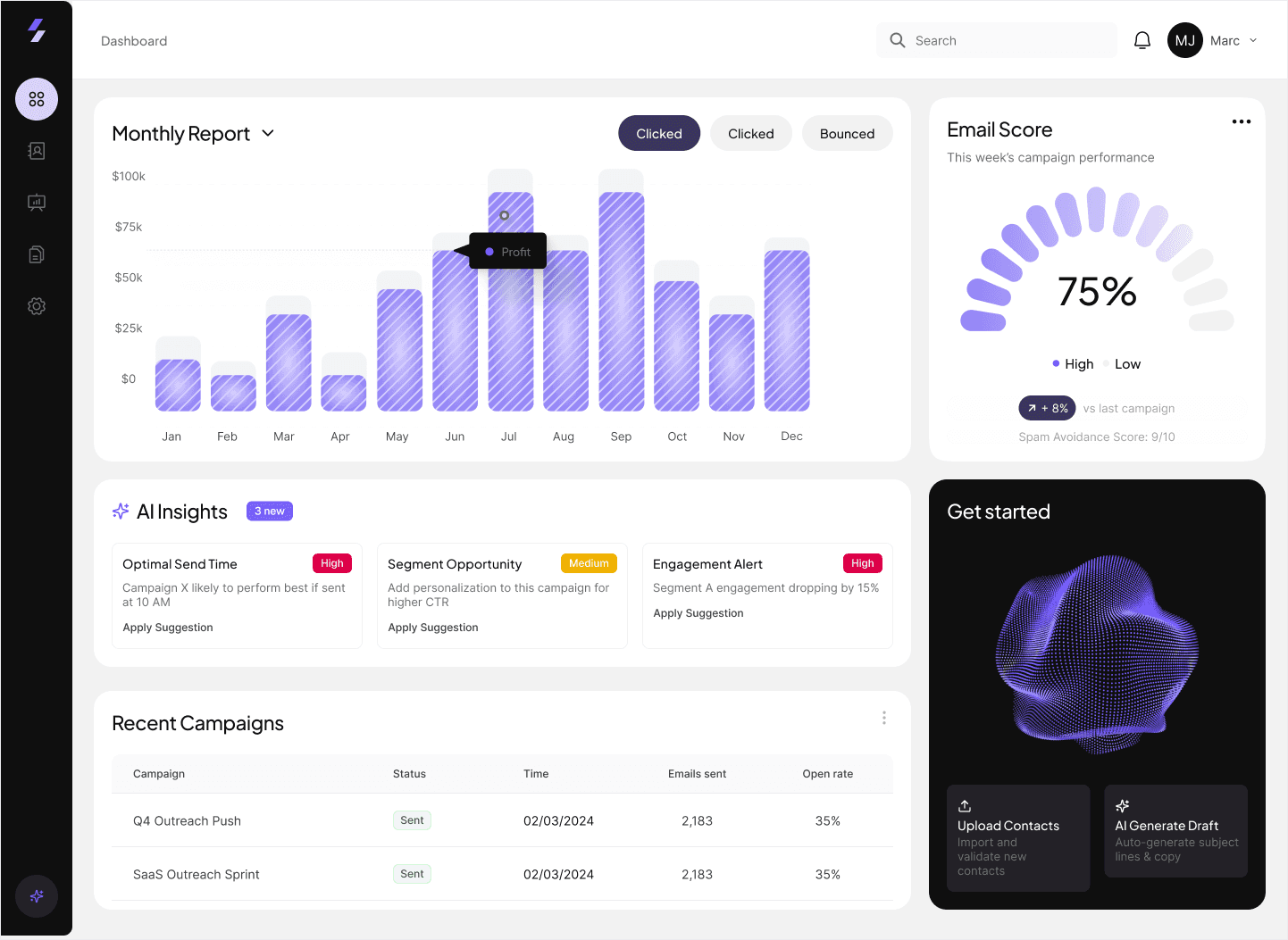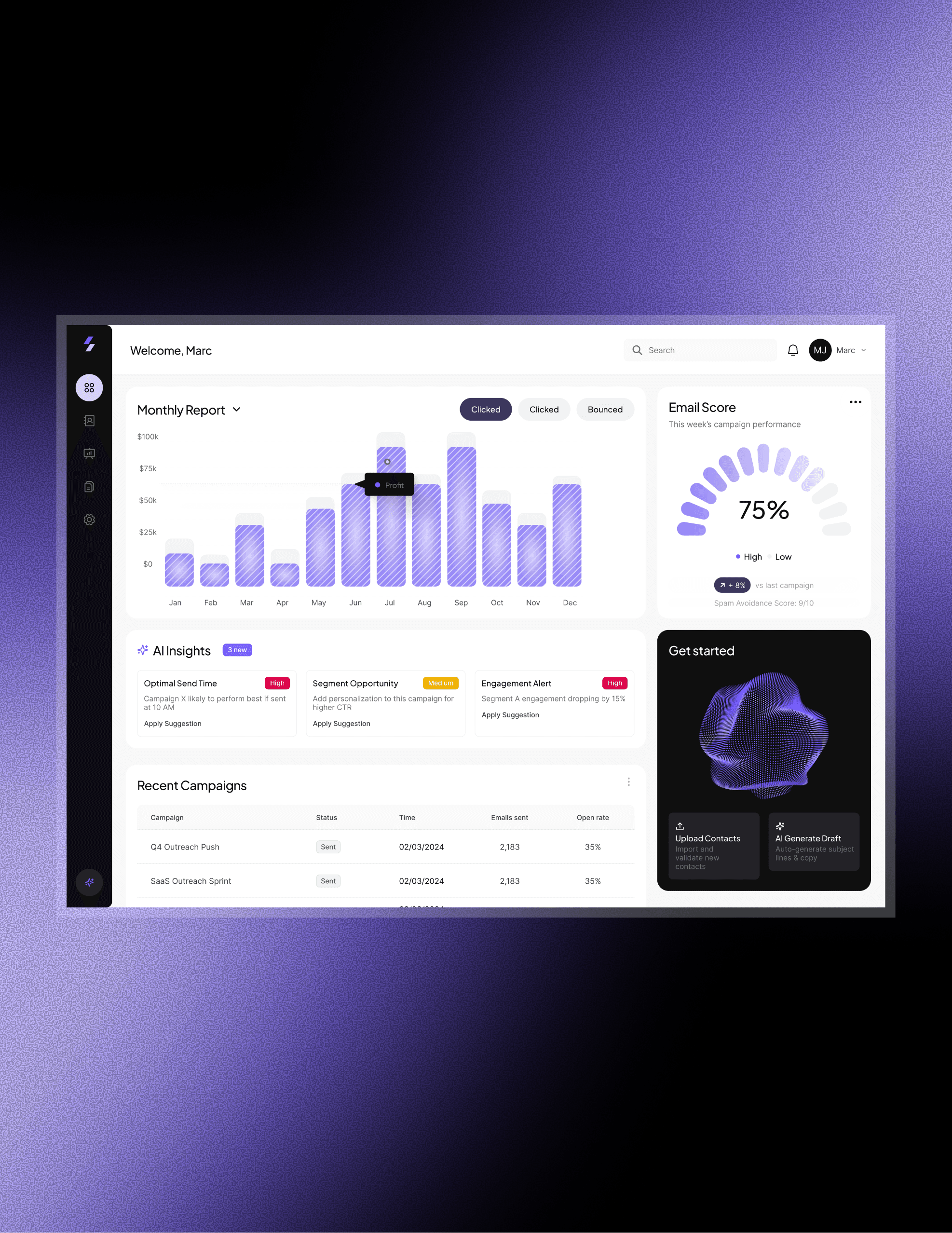 This project explored how AI could fundamentally change the way businesses create and send email campaigns. The platform was designed to help growing teams move beyond slow, generic newsletters and into a system where personalization, speed, and insight are built in by default.